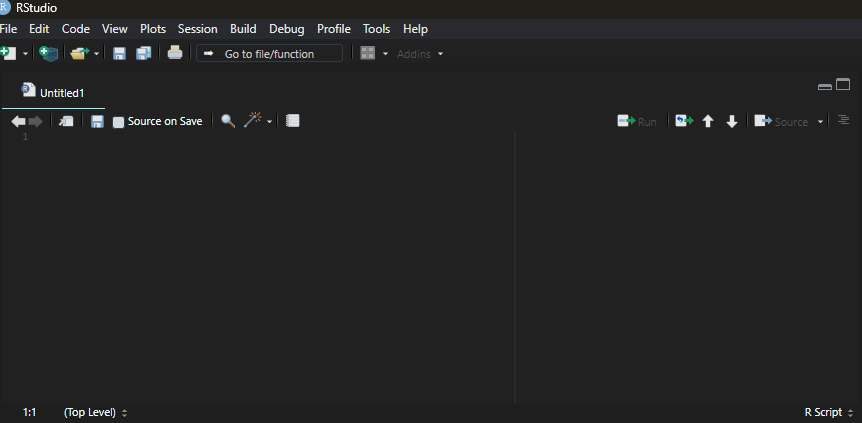 Ve a File → New File → R Script o presiona Ctrl + Shift + N (Windows/Linux) o ⌘ + Shift + N (Mac).